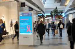 Wykorzystując trzy kanały systemu DOOH – Digital Citylighty w wiatach przystankowych, nośniki Move TV w sieci klubów fitness premium oraz Digital Indoor w galeriach i centrach handlowych, AMS emituje treści edukacyjne skierowane do kobiet. Celem projektu jest zachęcenie Polek do badań i profilaktyki raka piersi. Działania kontentowe AMS obejmą łącznie ponad 3,2 mln emisji na przeszło 1,8 tysiąca ekranów! Tylko na samych Digital Citylightach materiały związane z tą kampanią będą dostępne dziennie przez 19 godzin. Taką skalę można uzyskać tylko dzięki szerokiej i rozbudowanej gamie różnorodnych ekranów, które łącznie składają się na system DOOH.