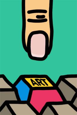 – Pracę zwycięską, której autorką jest Jadwiga Mołoń, wyróżnia prostota pomysłu oraz dodatkowo: radosna żywiołowa kolorystyka i bezpretensjonalny rysunek. Kolorowy klawisz komputerowej klawiatury oznaczony „art” daje gwarancję, że dziś wszyscy jesteśmy twórcami cyfrowymi – mówi Janusz Górski, kurator Galerii Plakatu AMS. – Hasło konkursu przywoływało na myśl radość tworzenia, dostępną dla wszystkich dzięki najnowszym technologiom. Jednak wśród wyróżnionych prac znalazły się dwie ukazujące niejednoznaczny, niezbyt optymistyczny obraz. Nie zaskoczyła nas znaczna liczba projektów wskazujących na zagrożenia, jakie stanowi cywilizacja cyfrowa dla użytkowników nowoczesnych technologii, ani ostrzegających, że sztuczna inteligencja zastąpi – powszechnie, choć z nie najlepszym rezultatem – kreatywność człowieka – dodaje.