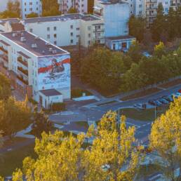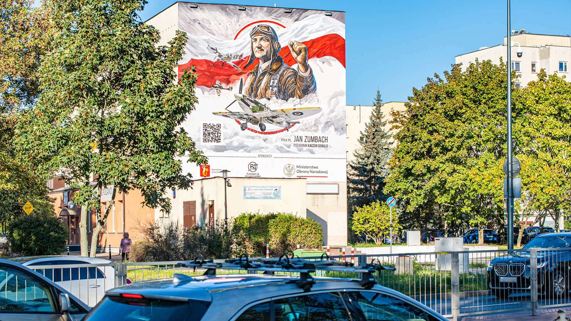 Mural Jana Zumbacha, Warszawa, ul. Kazury 2E, zrealizowany przez Grupę RW z inicjatywy Fundacji Polskie Niebo, wykonany z użyciem farb fotokatalitycznych KNOxOUT.