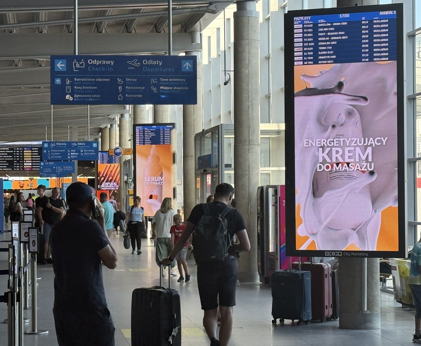 Po modernizacji terminala reklama na Ławicy zyskała zupełnie nowy wymiar. Dziś to sieć nowoczesnych nośników, rozmieszczonych w strategicznych punktach: od parkingu i strefy odlotów, przez poczekalnie, aż po odbiór bagażu.