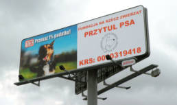 Fundacja na Rzecz Zwierząt „Przytul Psa” z Zalesia Górnegodziała od 2009 roku. Każdego roku pomaga ponad setce potrzebujących zwierzaków, przede wszystkim psom i kotom. Fundacja działa charytatywnie, gromadzi ludzi dobrowolnie chcących i potrafiących zająć się chorymi lub porzuconymi zwierzętami. Od kilku lat Fundacja prowadzi zbiórkę 1%. Od 2016 roku współpracujemy z Fundacją, realizując na jej rzecz kampanię na wielkoformatowych billboardach w sieci Motorway 12×4 m.